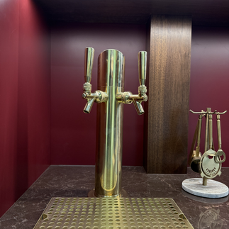 Speaking of statement pieces, this amber-colored glass bathtub from Vanity Art was an absolute showstopper. With its organic, wavy texture and warm golden hue, it felt more like a sculptural masterpiece than just a bathtub. And truth be told—we can never pass up a photo op in a stunning tub!
